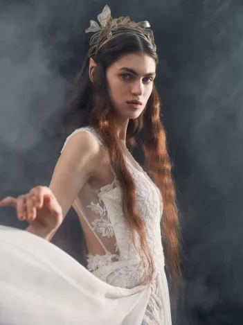Elfler diyarının masalsı atmosferinde, yıldızların altında, ay ışığının romantik dokunuşuyla ortaya çıkan Gisele, sadece bir gelinlik değil, bir sanat eseri. Bu gelinlik, derin ormanların sessizliğinde, elflerin elleriyle, özel olarak seçilmiş en ince kumaşlardan dokundu. Her bir dikişi, her bir işlemesi bir öykü taşıyor. Elf kadınlarının gizemli güzelliklerini, onların doğal saç&makyajlarından esinlenerek hazırlanan bu gelinlik, bir rüyadan fırlamışçasına etkileyici.